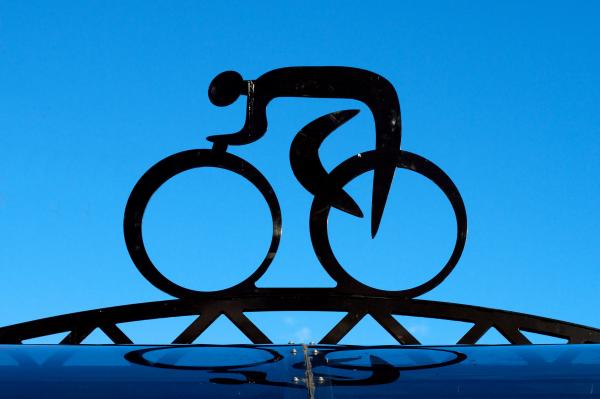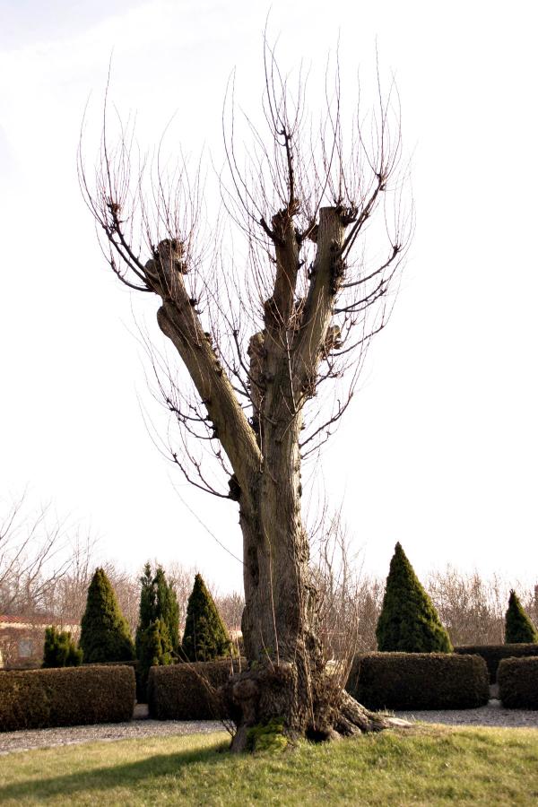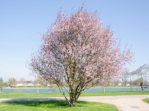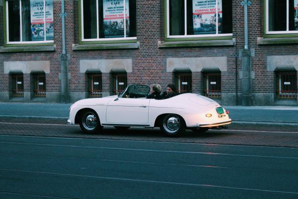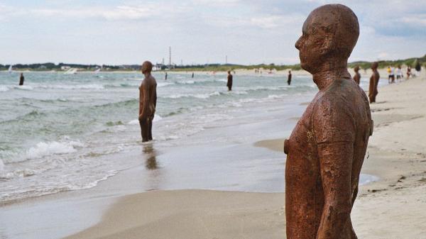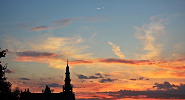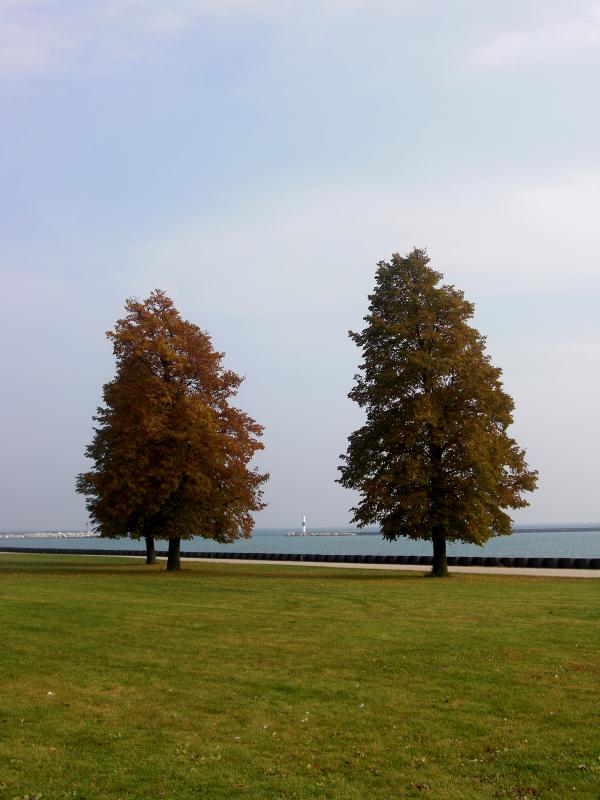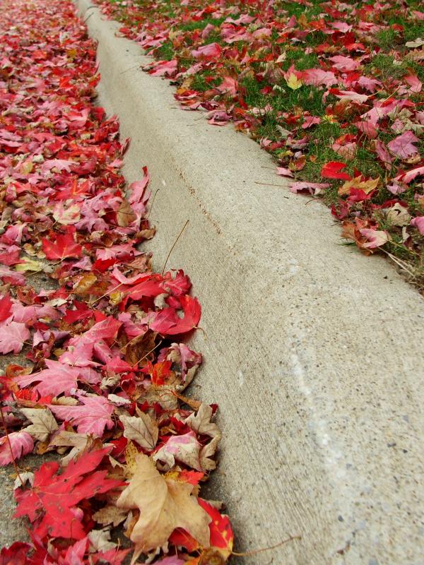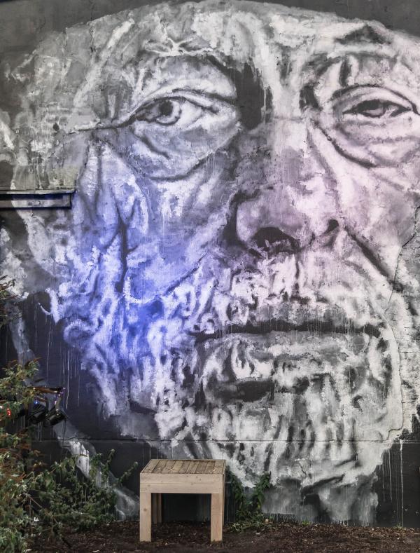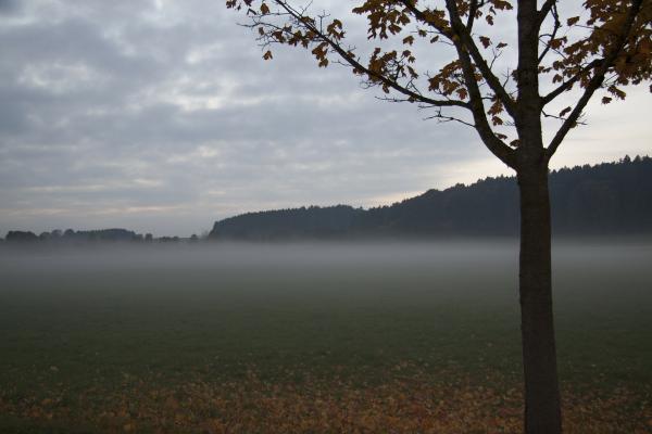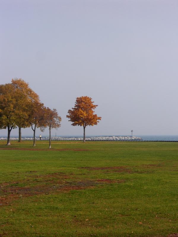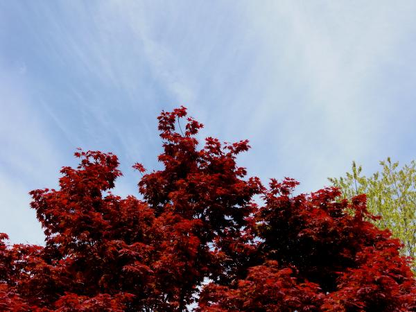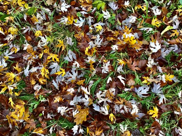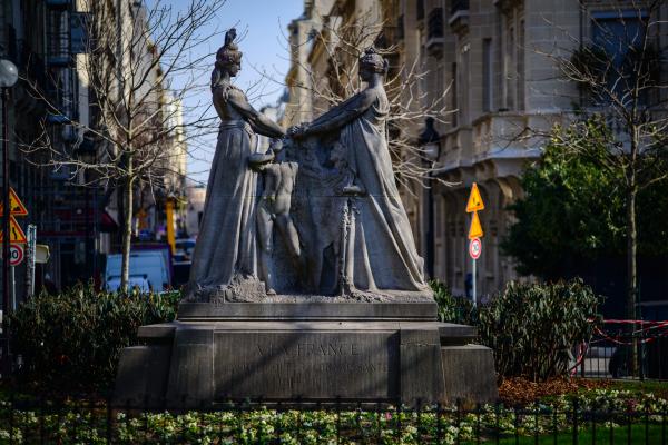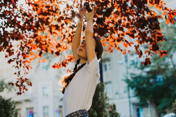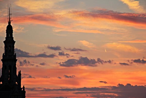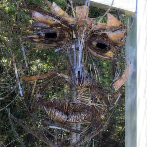 sculpture in the street with a autumn tree, in the city Amsterdam, Netherlands.