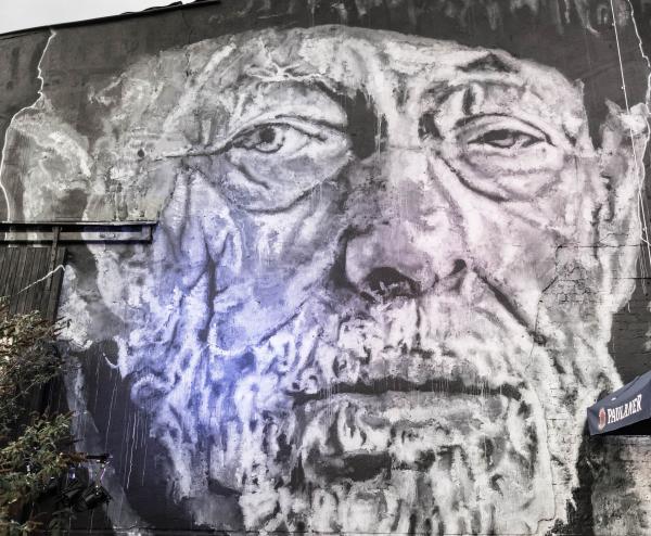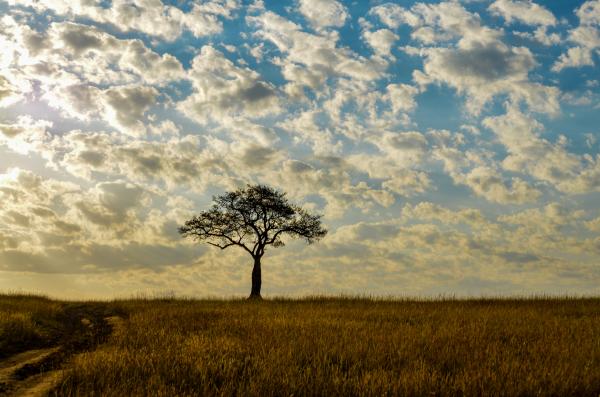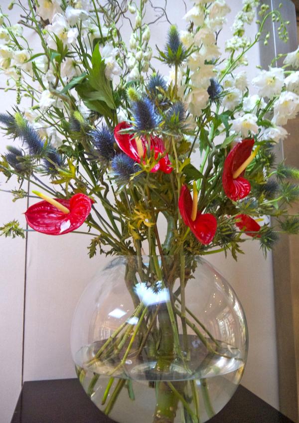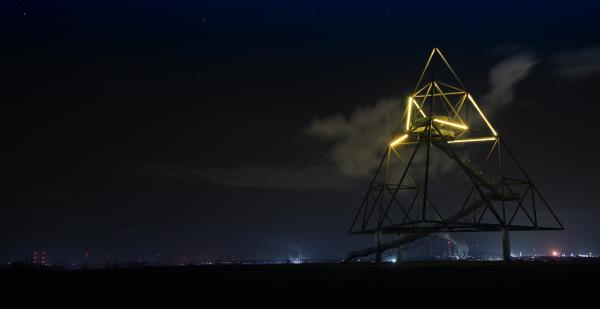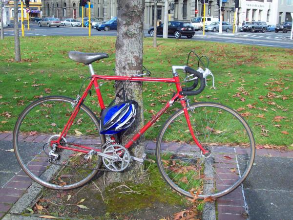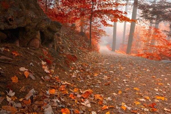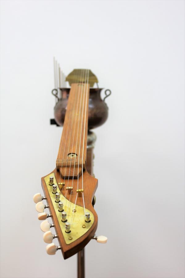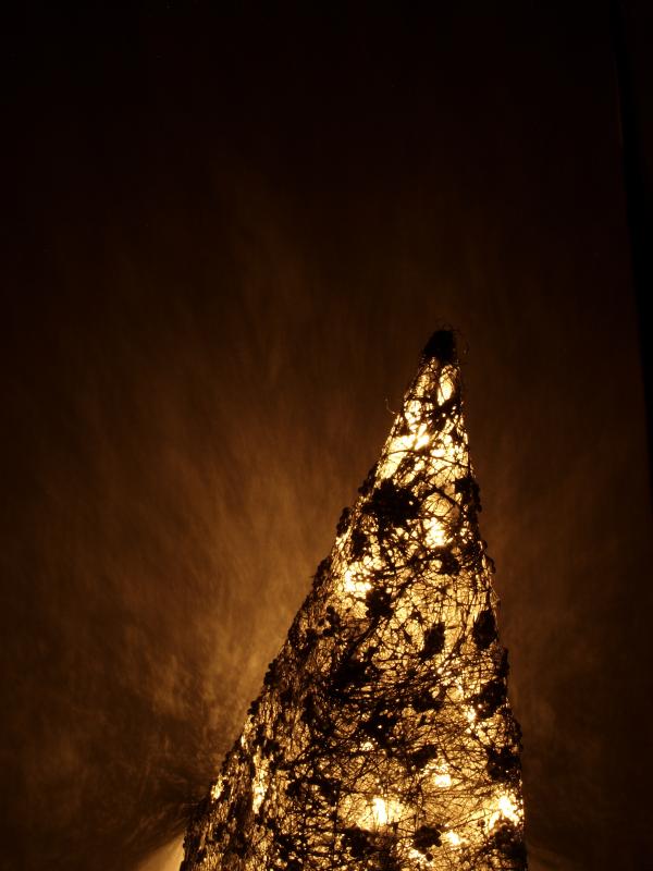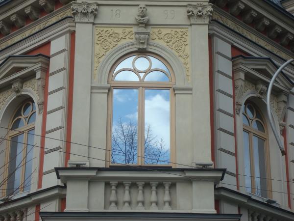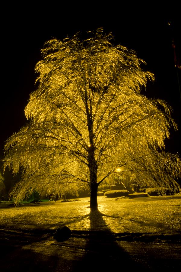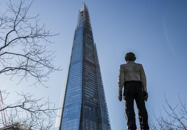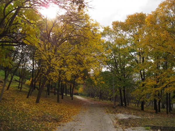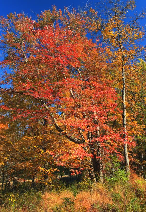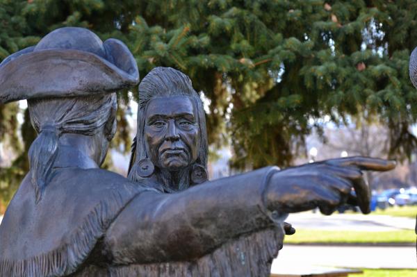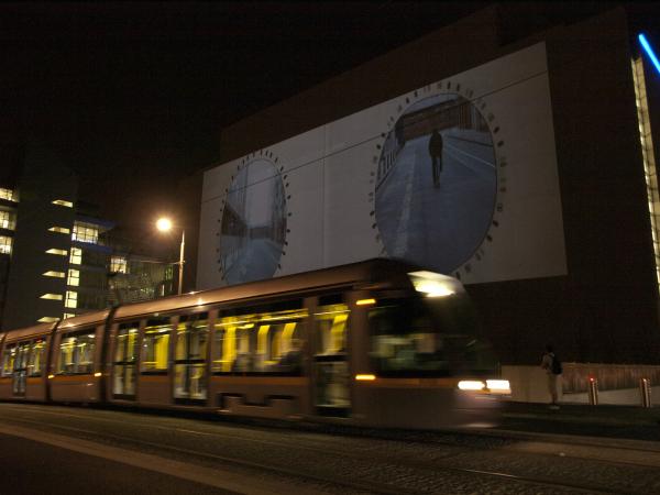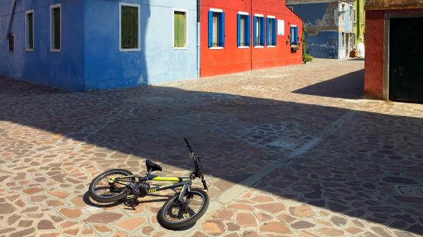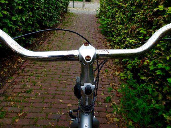 sculpture in the street with a autumn tree, in the city Amsterdam, Netherlands.