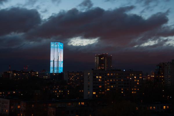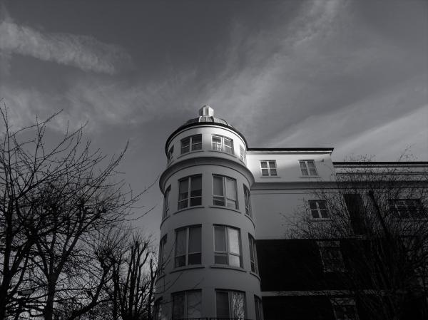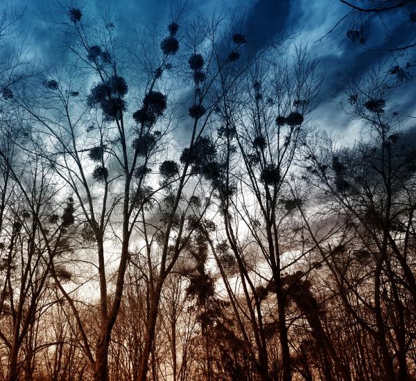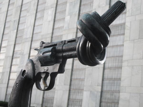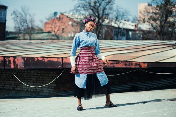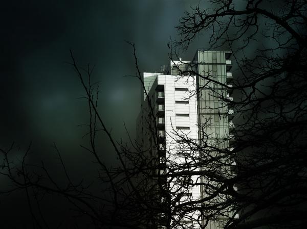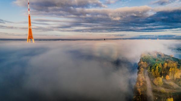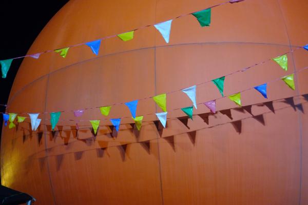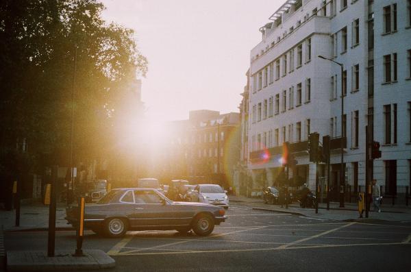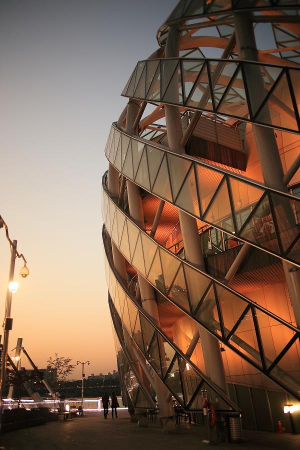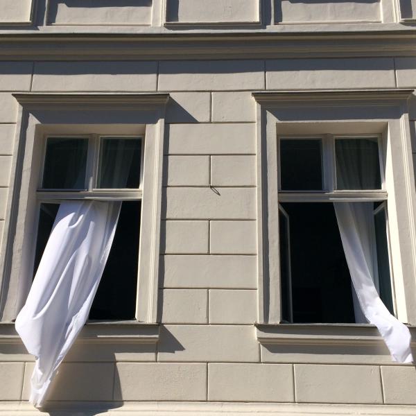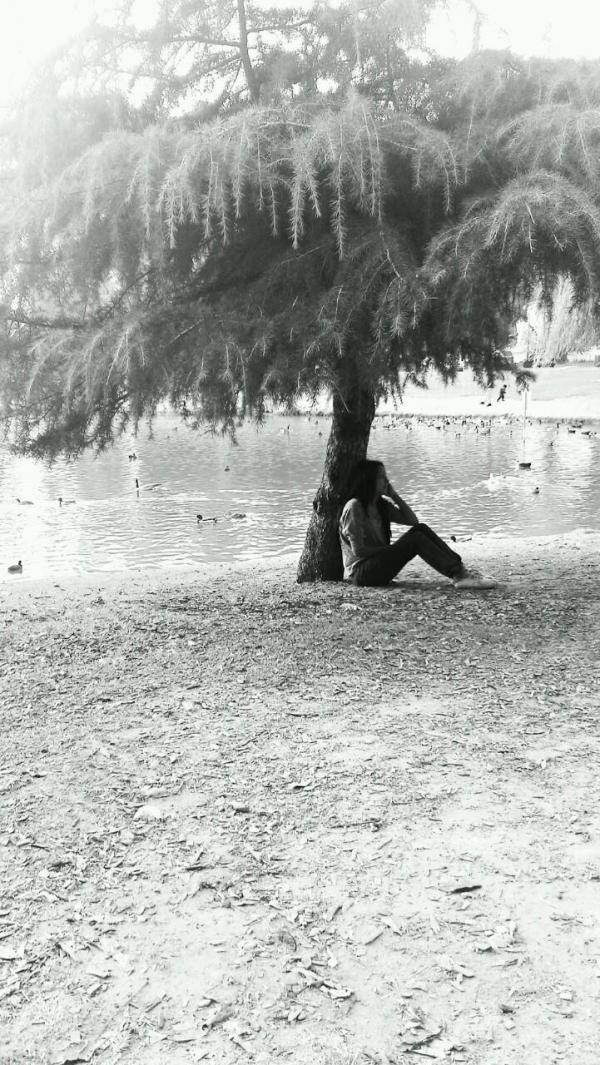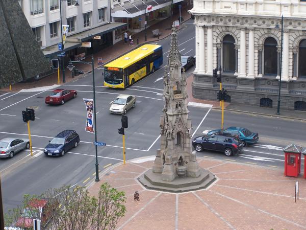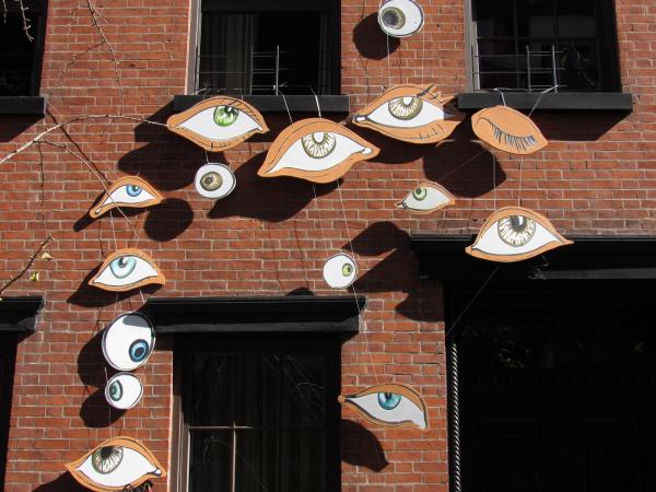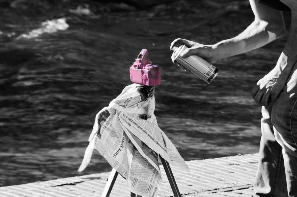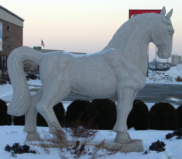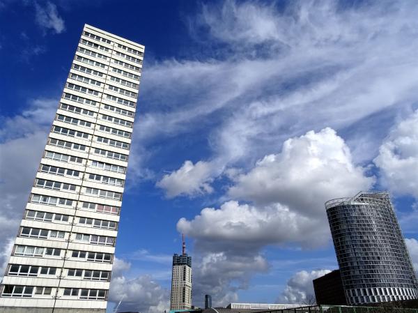 sculpture in the street with a autumn tree, in the city Amsterdam, Netherlands.