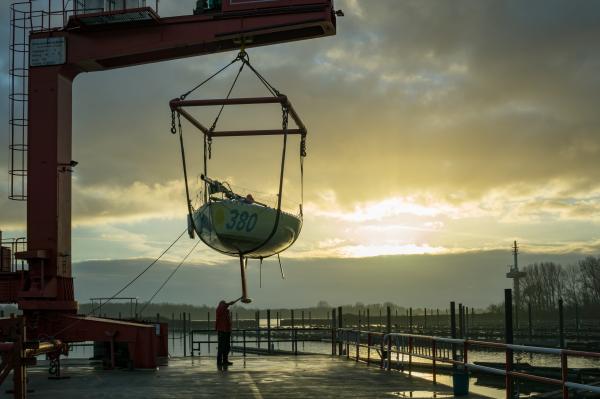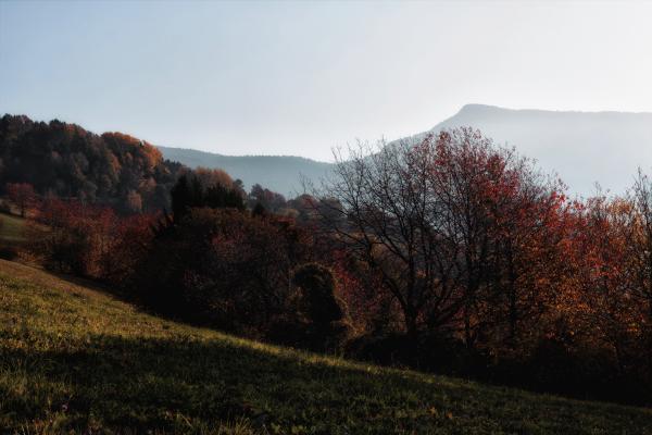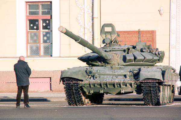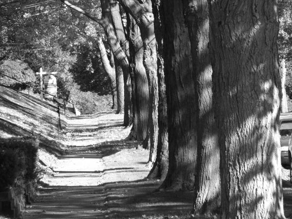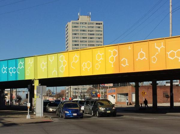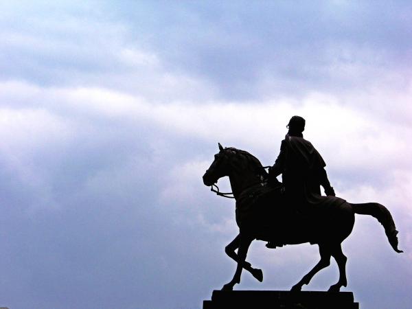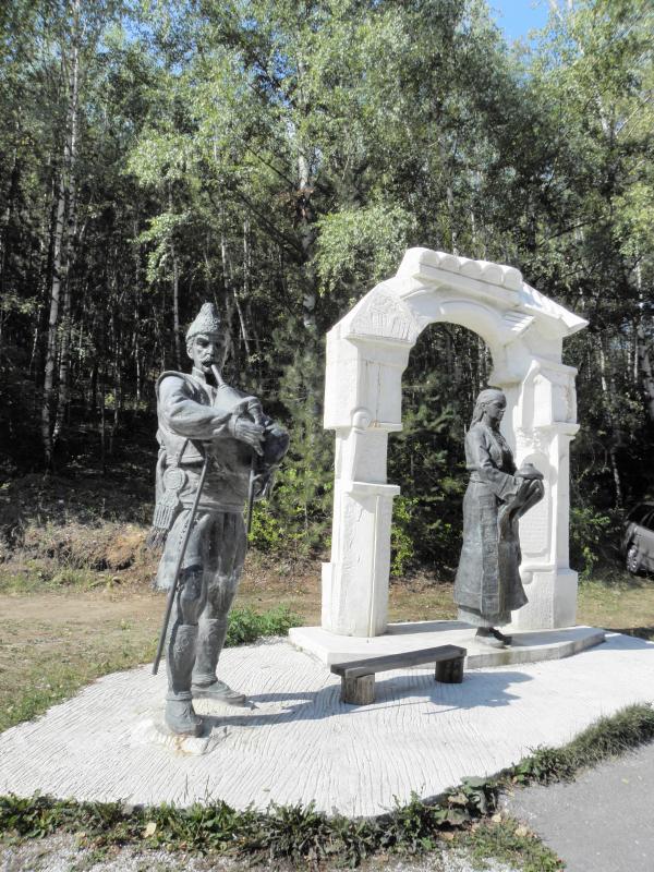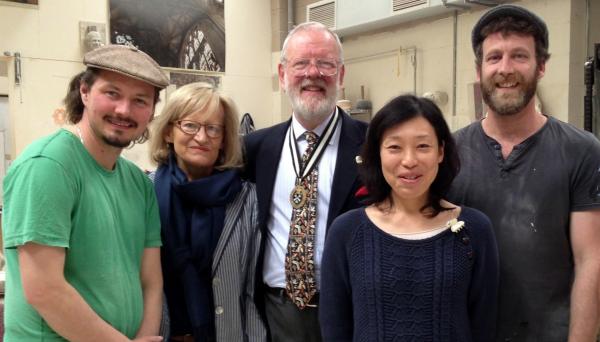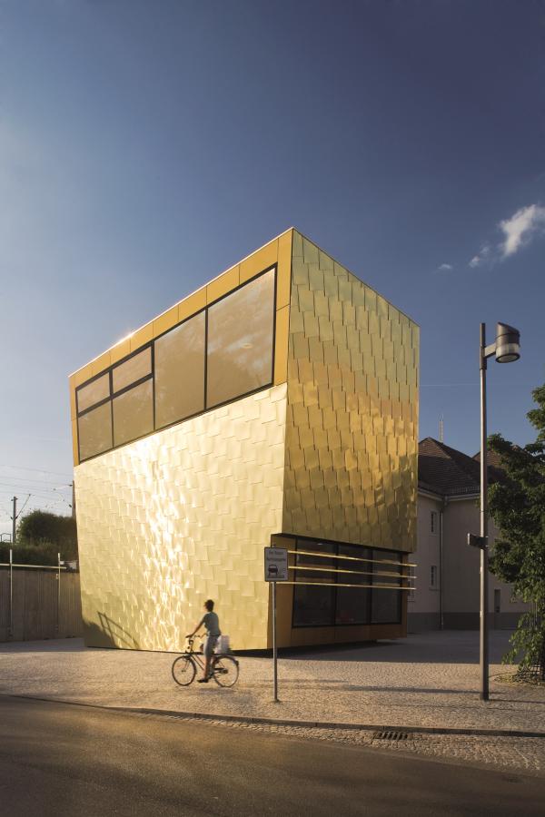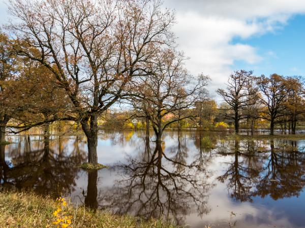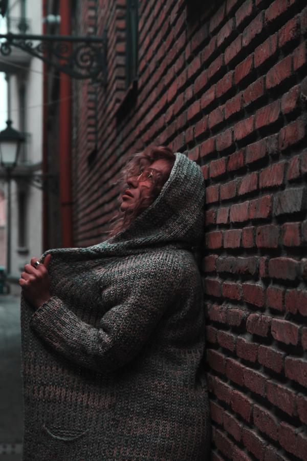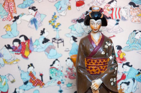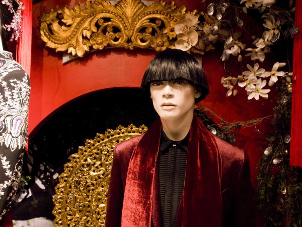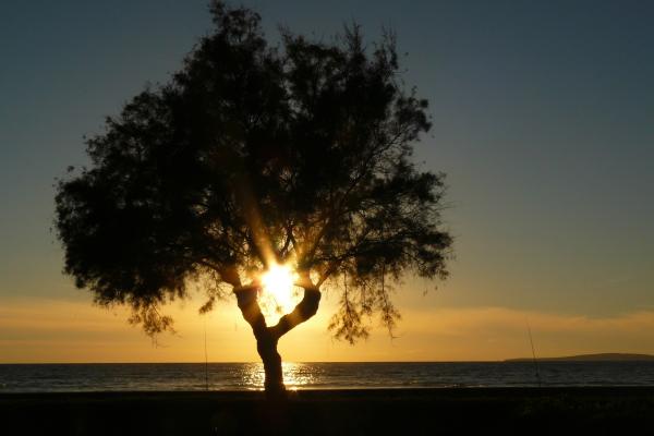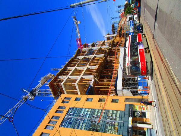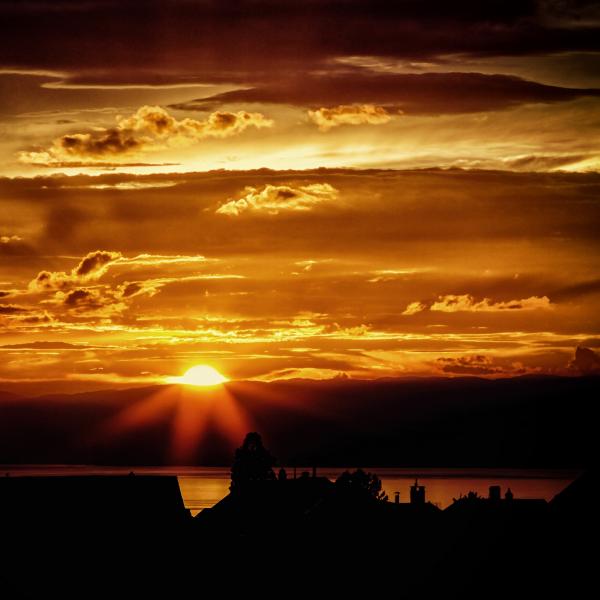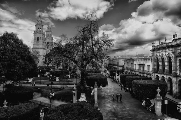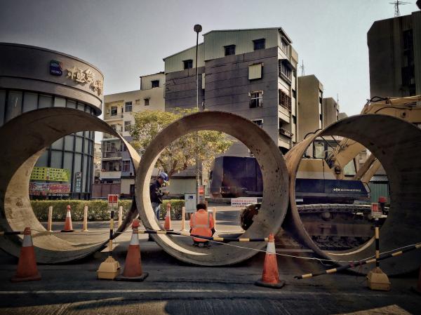 sculpture in the street with a autumn tree, in the city Amsterdam, Netherlands.