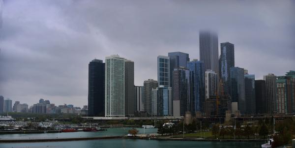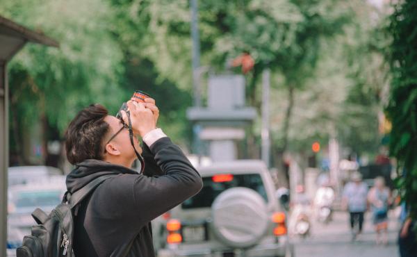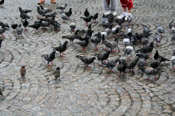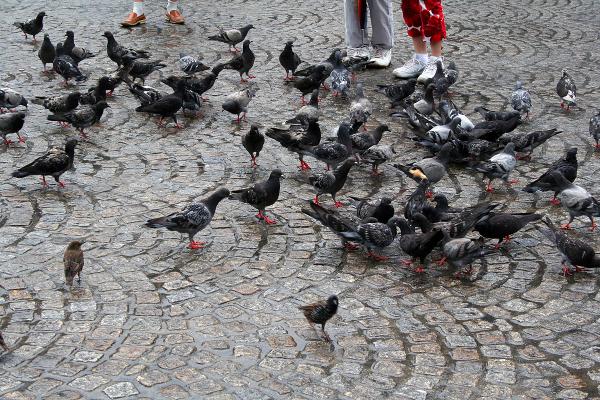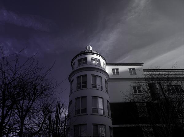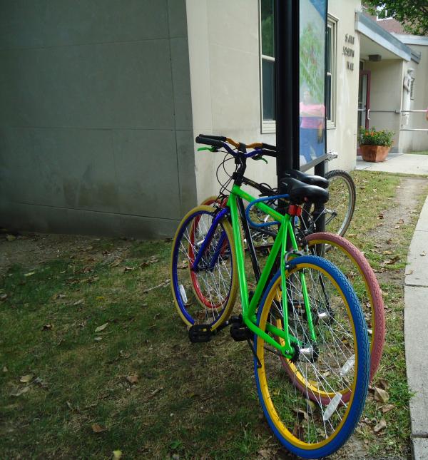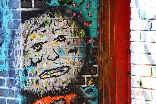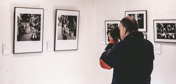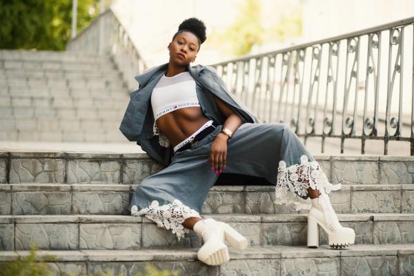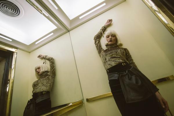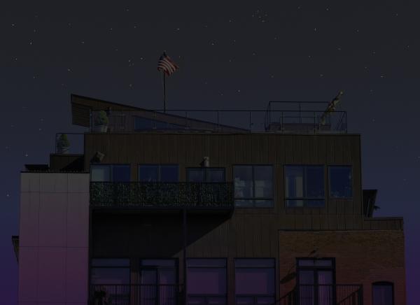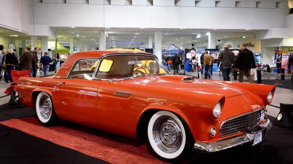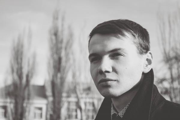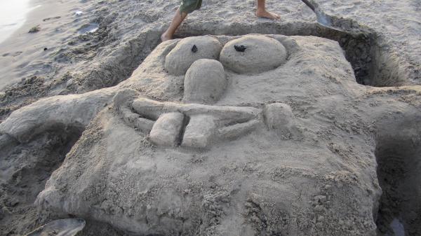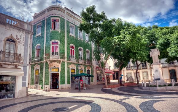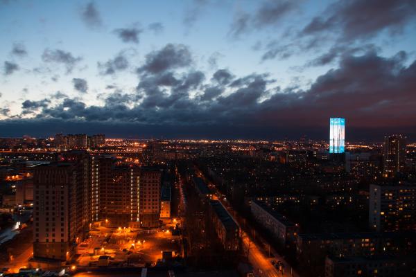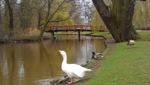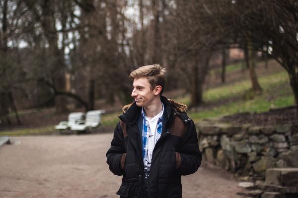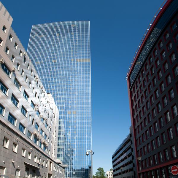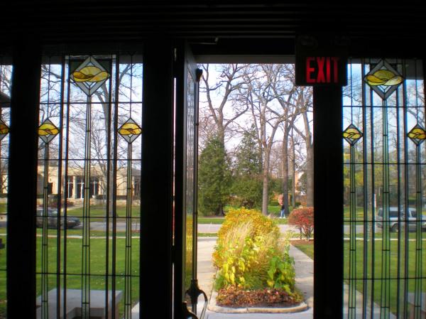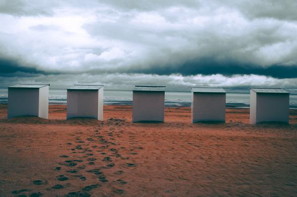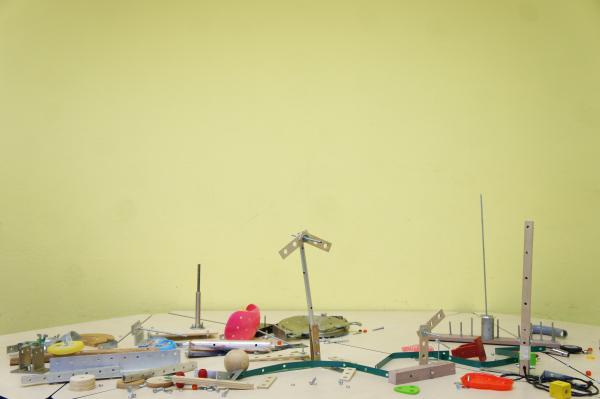 sculpture in the street with a autumn tree, in the city Amsterdam, Netherlands.