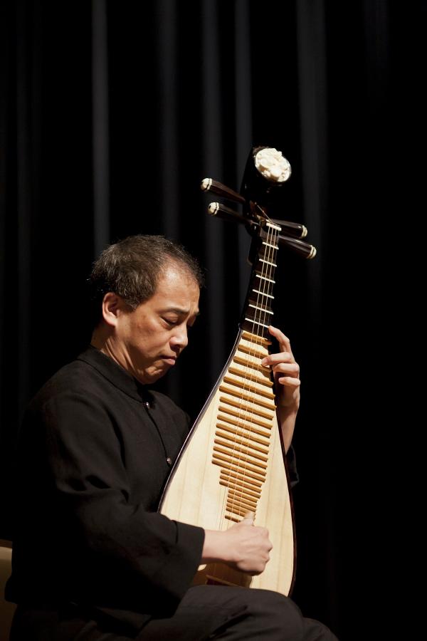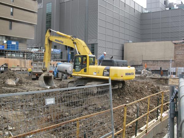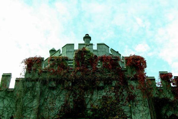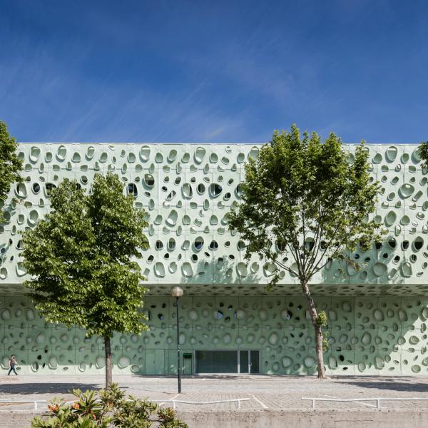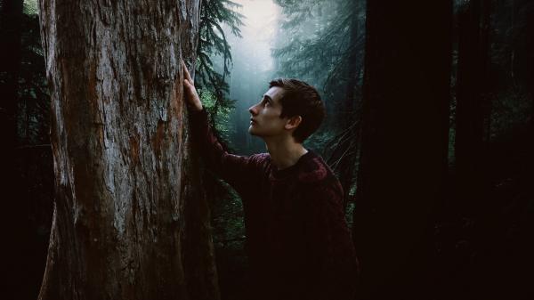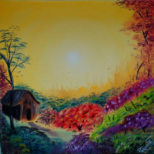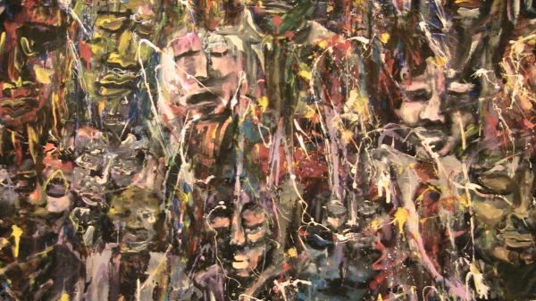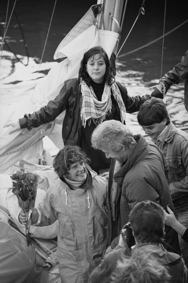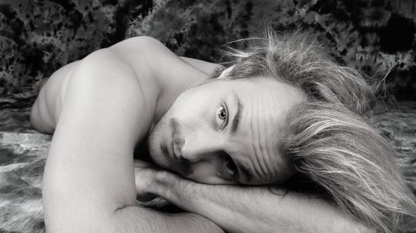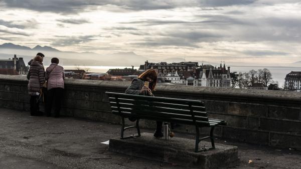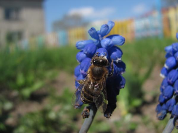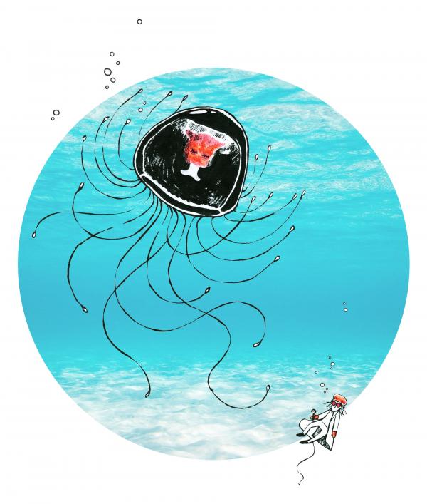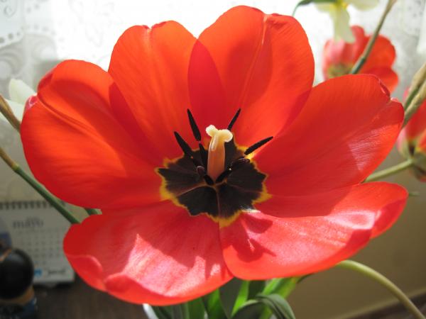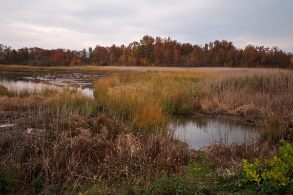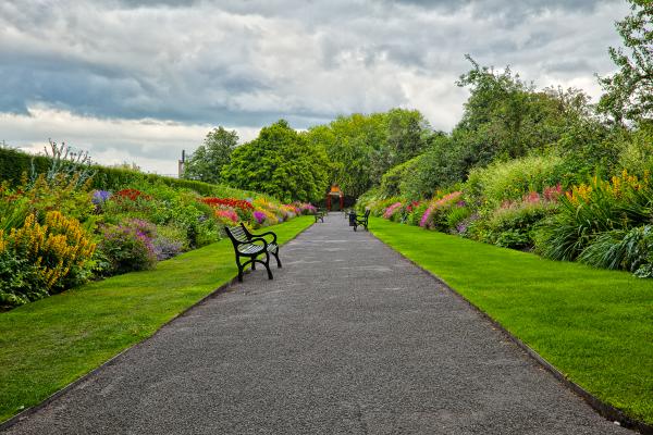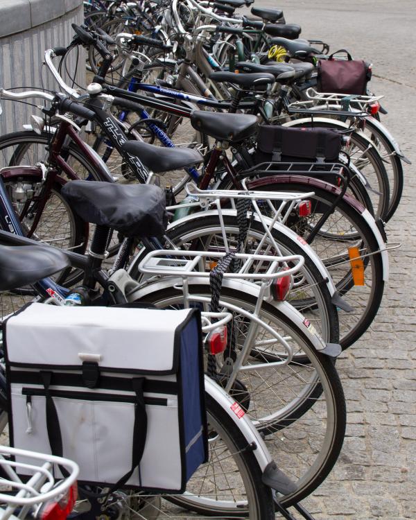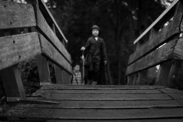 sculpture in the street with a autumn tree, in the city Amsterdam, Netherlands.