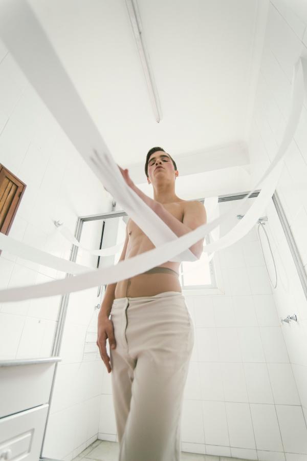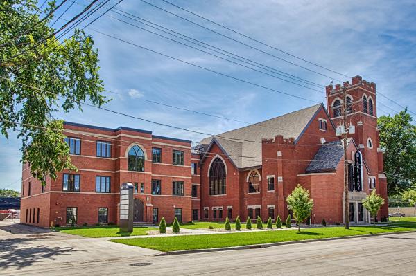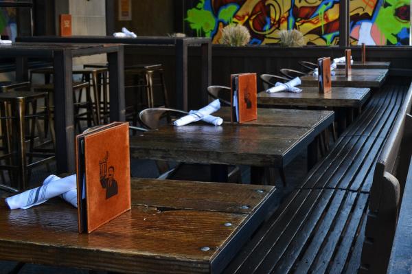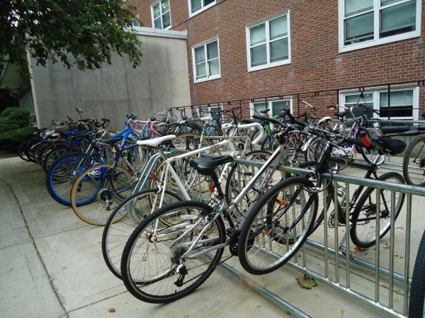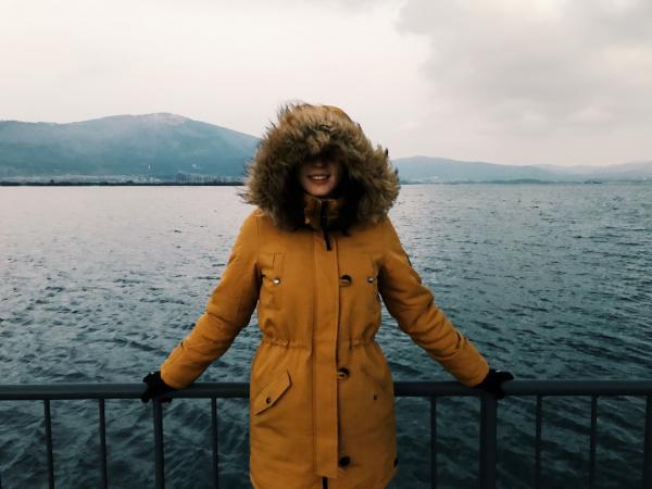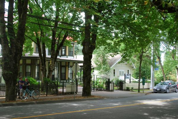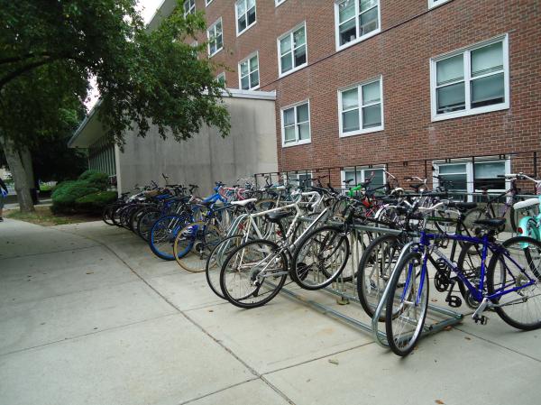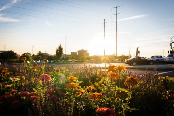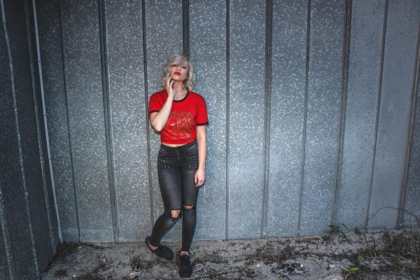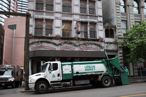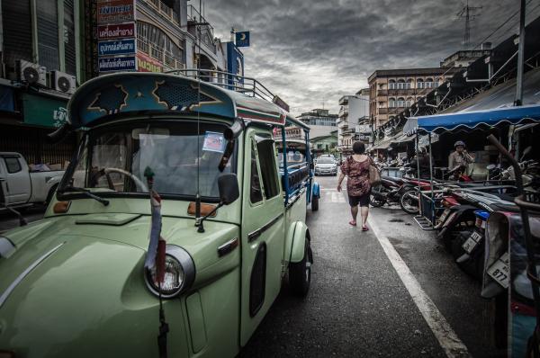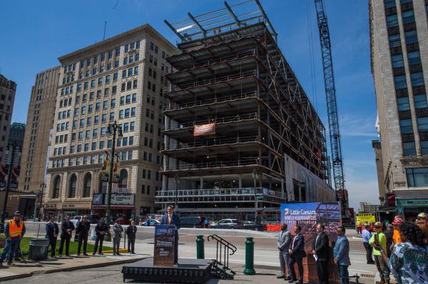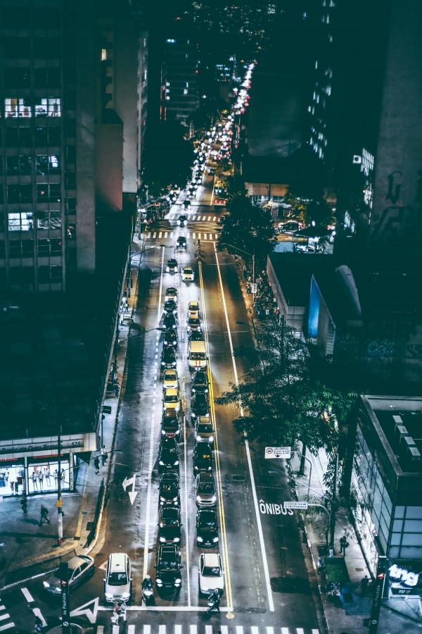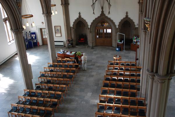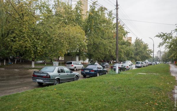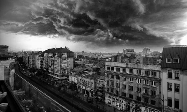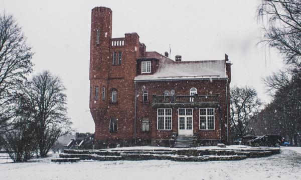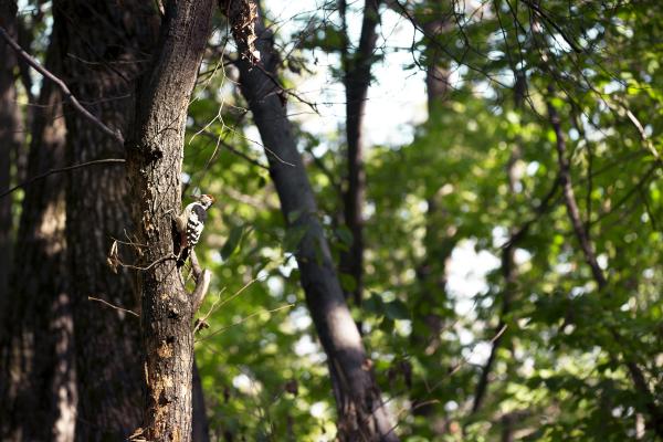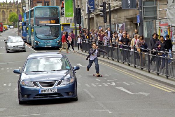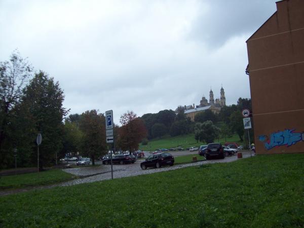 sculpture in the street with a autumn tree, in the city Amsterdam, Netherlands.
