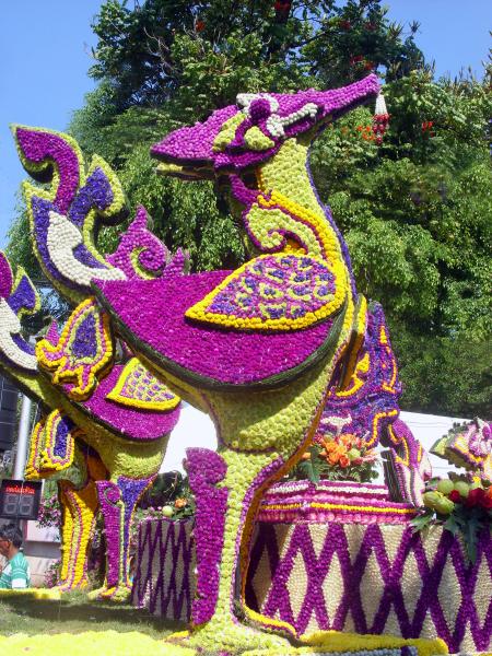 The Loi Krathong/ Yi Pemg Festival in Chiang Mai, Thailand is celebrated with floating flower offerings, sky lanterns and fireworks